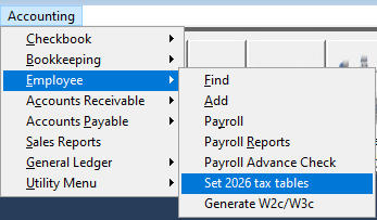 Please download and apply the latest update with a date of 1/2/26 or after. The update date can be foundat the bottom left side of the screen below the Logout button and immediately under “Version”. If you need to apply an update on the Simply Genius Console screen click download when the download is completedand all users are out of Simply Genius then select apply update.After the update has been applied then go to Accounting (you will need to have permissions settings for thisaccess), then select Set 2026 tax tables.Please note that you may need to call to authorize this update. To purchase this update please click here:Purchase 2026 Tax Tables You will be credited if charged for the payroll update if this is already included in your monthly support. You can also click on the Help us Improve Simply Genius button and submit a support request.